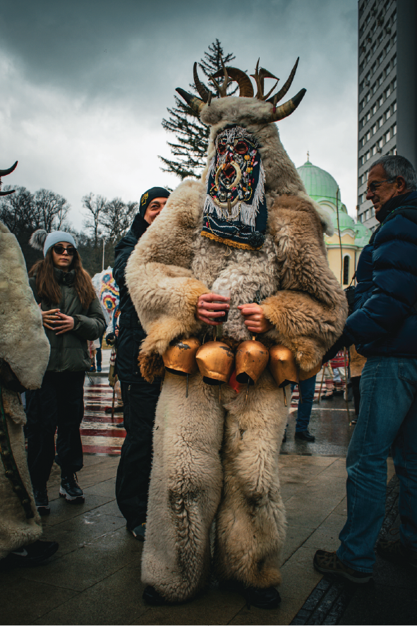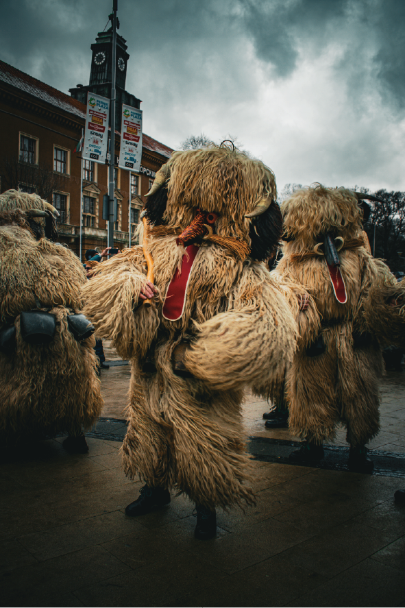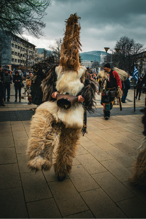 The Kukeri are the central figures of the Surva Festival. They’re masked performers who take part in ritual-style dances and processions meant to drive away negative forces and bring good fortune.